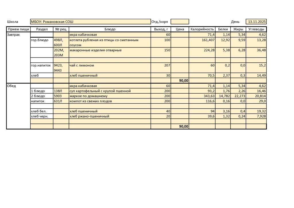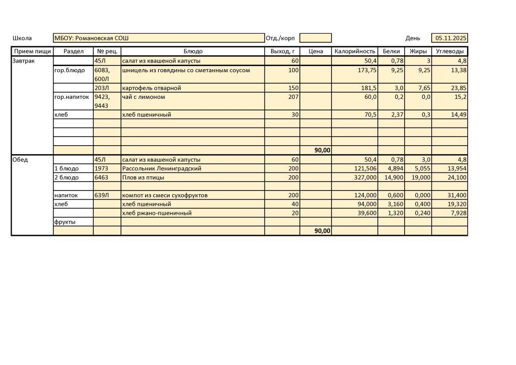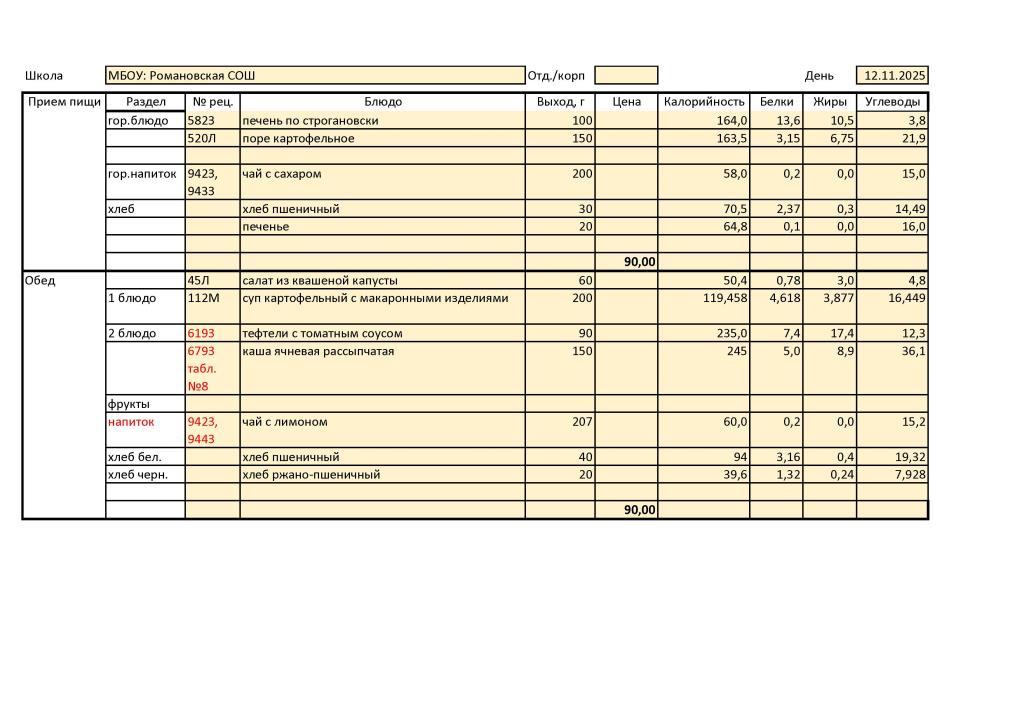 В МБОУ: Романовская СОШ диетическое меню не разработано ввиду отсутствия обучающихся, нуждающихся в диетическом питании.