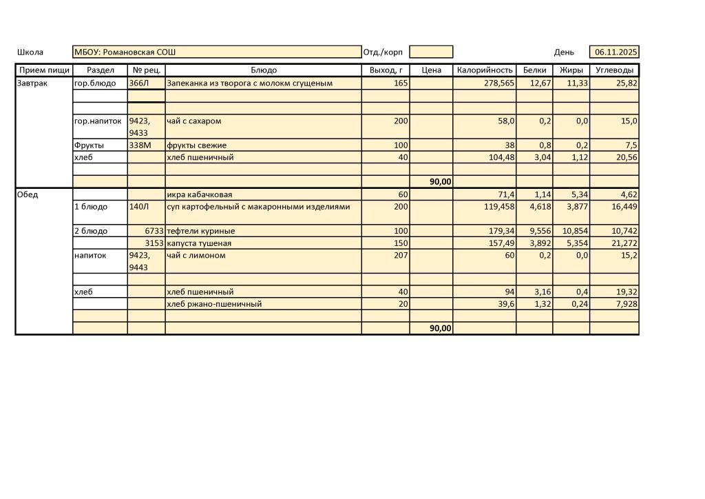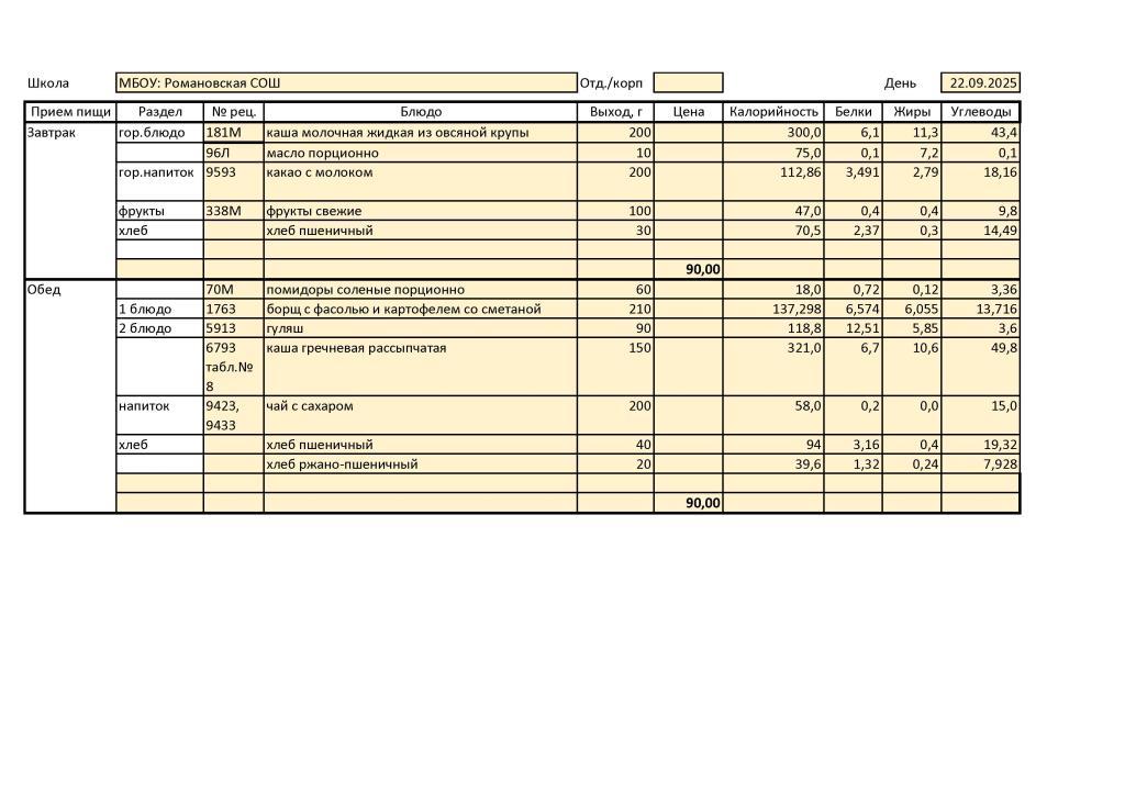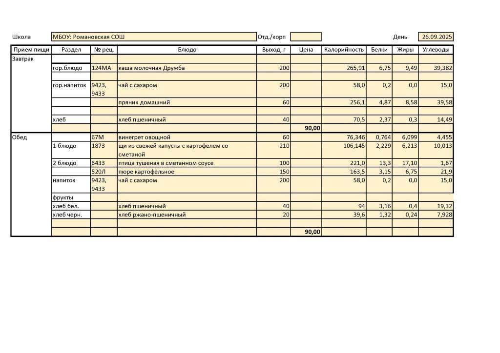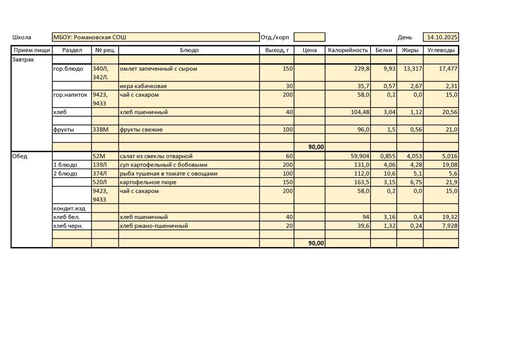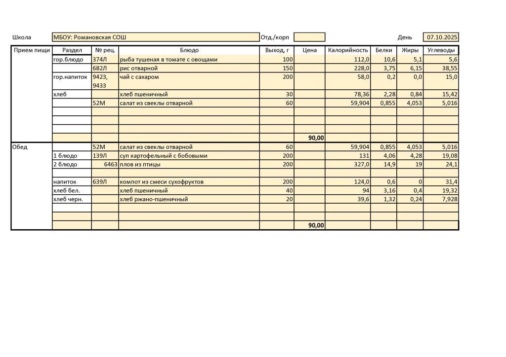 В МБОУ: Романовская СОШ диетическое меню не разработано ввиду отсутствия обучающихся, нуждающихся в диетическом питании.